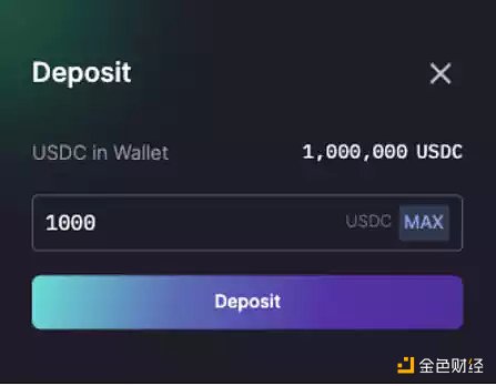 然后输入想要做多的代币数量,交易界面会自动充值所需的 USDC,并设置可接受滑点
