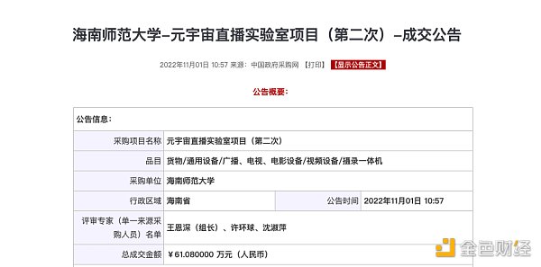 本期内容我们将对国内各地11月份元宇宙招标项目进行盘点,并简单介绍采购项目概况。