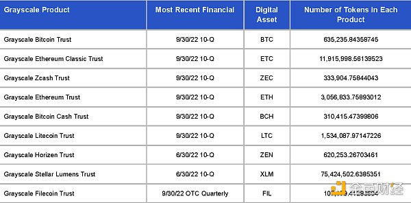 截至11月24日,Grayscale持有的BTC价值104.66亿美元、ETH价值35.73亿美元、ETC价值16.68亿美元、LTC价值6.97亿美元、BCH价值1.02亿美元,此外还有BCH、ZEC、MANA、XLM等价值1亿美元内的持仓。