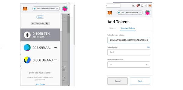 如果一切看起来正确,请单击“添加通证”,新的个人通证应显示在您的Metamask钱包余额中。