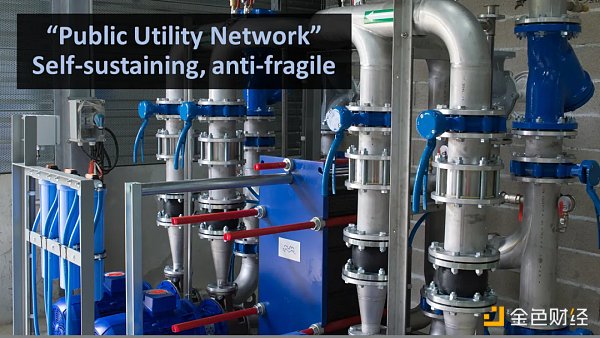 这些公共基础设施网络是自给自足的,非常难以被摧毁。要摧毁比特币,你实际上必须摧毁这6,000个节点中的每一个。而总是有一小部分人(也许是10个,甚至是10,000个!)会一直运行比特币节点直到他们的生命结束。这些网络也具有反脆弱性。每次攻击比特币时,如果有人真的设法攻击它,其他人会进来修复这些漏洞,这使得每次攻击都使其变得更加强大。具有自给自足的反脆弱特性,公共基础设施网络甚至可以实现像万年钟那样,10,000年的时间跨度。