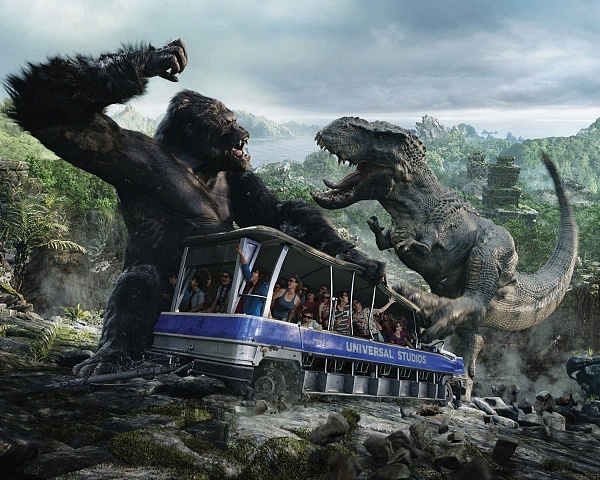 金刚项目是好莱坞环球影城工作室之旅中的一个景点,将带你进入彼得·杰克逊2005年电影《金刚》中重现的骷髅岛,踏上一场身临其境的旅程。所有游客都需要戴上3D眼镜,以更真实、吸引人的方式观看体验。