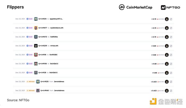 2.短线投机者 - 另一种策略是大量铸造来自小众项目的NFT,并以更高的价格出售。例如,下面的用户铸造了大量的NFT并以盈利出售它们。