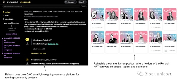 治理,在多人游戏创建的协调阶段,可以采用JokeDAO*和Prop House等自下而上的提案管理工具,以及Snapshot*等投票基础设施。