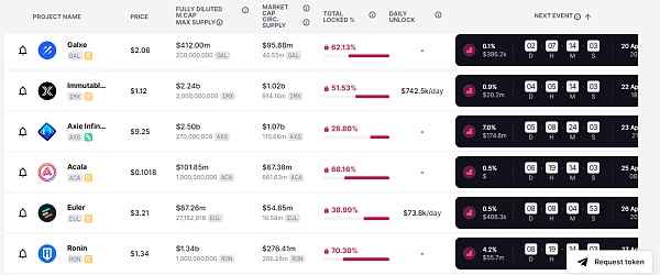 在寻找投资机会时,查看项目的代币解锁时间表可能很有用。Token Unlocks 提供了这样一个简单的工具,可以让你找到大多数项目的解锁时间表。