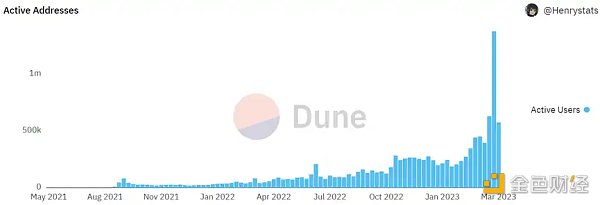 图 1. Arbitrum 每周活跃地址数(来源:dune, /img/2023525201115/1.jpg" />