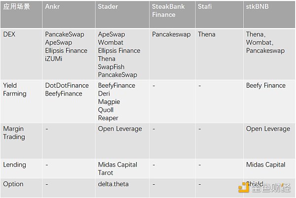 来源:pSTAKE Finance,Mint Ventures除了提供质押服务以外,pSTAKE Finance还为用户提供自身质押凭证的应用场景:以pSTAKE Finance的BNB质押凭证stkBNB为例,虽然BNB staking业务上线时间较晚,但由于2022年下半年获得了币安的投资,生态合作方接入的速度非常快。用户的stkBNB可以应用到很多BNBchain生态里主流的DeFi,比如stkBNB可以存入Beefy Finance中赚取额外的收益,也可以用作保证金在OpenLeverage中进行交易,还可以存入Midas Captal中赚取借贷收益等。