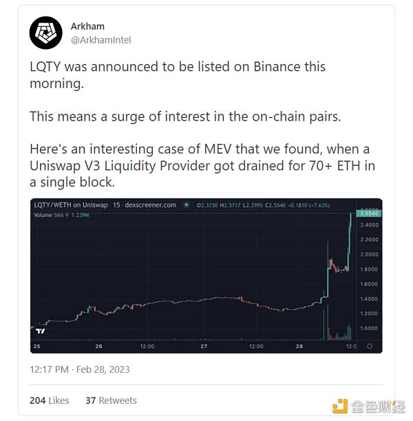 例如,Arkham可以很好地发现那些在早期入手特定代币随后高价卖出的鲸鱼钱包。你可以使用该网站找到最近价格暴涨的代币,比如Liquity LQTY,然后便可以很容易地识别出在价格暴涨之前积累LQTY的鲸鱼钱包。