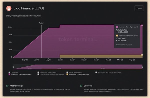 ? Paradigm 的 1 亿枚 $LDO 代币会在2023 年 5 月 1 日完全解锁,当中 7900 万枚已经解锁。