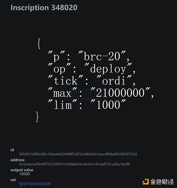 使用 Ordinals 协议刻录下图所示文本来部署 BRC-20 Token: