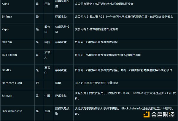 根据公开的信息和与某些愿意公开细节的个人的对话,我们制作了以下图表,我们认为,这些图表提供了迄今为止开源比特币开发者资金来源情况的最全面介绍。