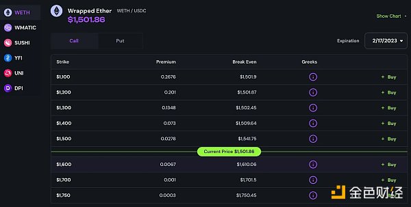 Premia 为你可能有兴趣对冲尾部风险或进行投机的较小市值资产提供期权。与 Hegic 类似,该协议为交易者提供了各种行权价的自定义到期日。