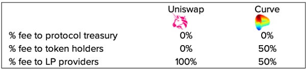 图:Uniswap和Curve追踪7天的交易量和交易费用