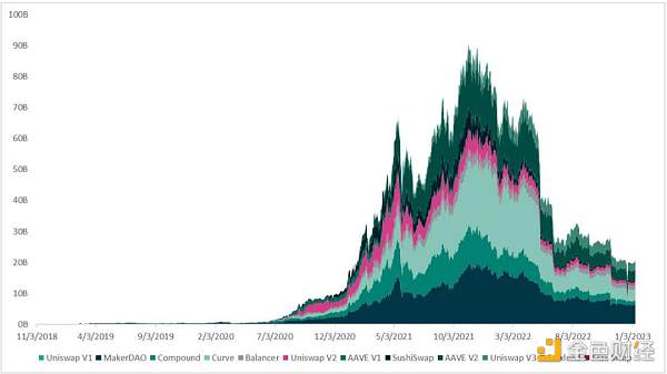 与 DEX 一样,借贷协议也越来越受欢迎,过去两年使用 Aave 作为代理存入了价值数十亿美元的 Token: