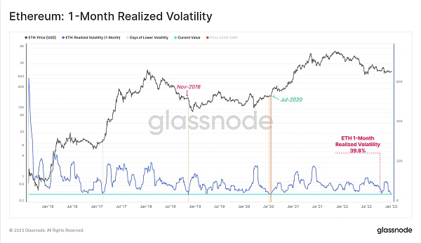2022年终加密市场一直很平静,但这种情况一般不会持续很长时间。过去以太坊和比特币波动率如此低的情况通常发生在极其动荡的市场环境之前,之前类型情况的交易价格也时高时低。