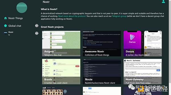 而NOSTR是一个协议,通过这个协议,可以建立很多东西,这个协议相对轻量级的、简单但可扩展的开放协议,在它上面可以建立真正去中心化的社交媒体平台。