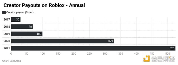 这在今天看来可能很牵强,但考虑到 2021 年有超过 70 名开发者在 Roblox 上赚到了一百万美元以上。还有 7 名开发者的收入超过 1000 万美元。