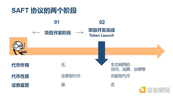 SAFT是专门针对架构在区块链网络上 Web3 项目的一种投资协议,由美国一家名叫Cooly 的律所于 2017 年 10 月 2 号操刀发布。