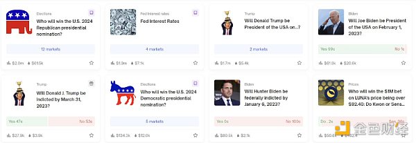 Polymarket 可能是该领域中最有趣的应用。它在 2022 年全年都显示出健康的交易量,并继续创造最有趣的注。