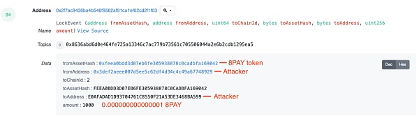 图片:攻击者使用少量的8PAY代币发起跨链转移。来源:Etherscan