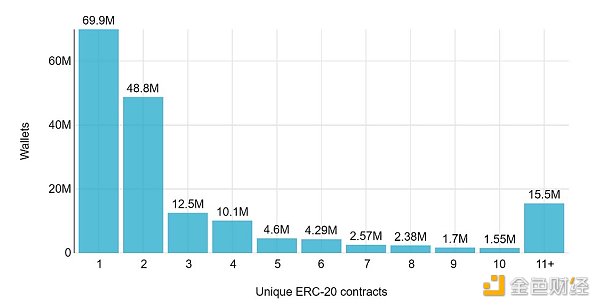 6990万个钱包坚持使用单个代币,这可能表明用户倾向于以下情况:
