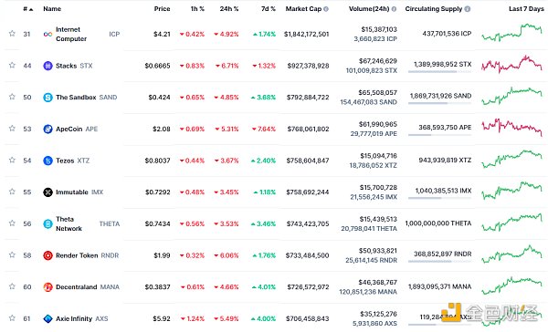 24小时NFT交易量、交易量前十项目 数据来源:Coinmarketcap