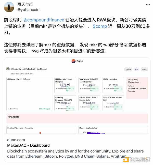 虽然 RWA 概念已经存在很久,但叙事与币价互有反身性,热心的用户一直在为本轮上着寻找逻辑。