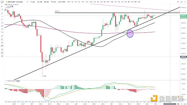 近期BTC持续震荡上行,MA50已经上穿MA200日均线,我们发现这一次MA200日均线趋势角度是微微上翘的,意味着后面价格一旦出现回落,也将起到一定的支撑作用,这一次能否像15年一样出现上涨周期较长的大牛行情,后面还需进一步观察,不过至少侧面表明大趋势在逐步构建,大方向或许已经步入长期牛市行情。