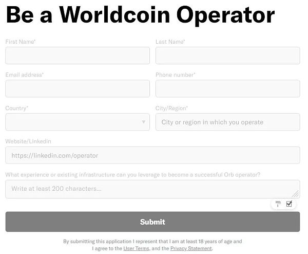 用户可申请成为操作员,成为操作员的流程分为四部:1、填写表格申请;2、面试;3、收到一台Orb;4、开始推广,操作员可从每个使用Orb注册成功的用户上赚取收益,成为操作员需要建立自己的推广团队并且选择人流量多的地方进行推广。