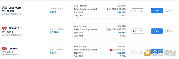 Extra本身是一个借贷协议,但协议自带UI/UX支持用户通过协议加杠杆参与Velo DEX的流动性挖矿,到现在为止协议依然在提供着较高的流动性收益。高额的LP收益减缓了用户持有 $VELO 时所面临的Token排放(另一种方式是锁定VE吃贿赂收益)。目前其TVL是19M,是OP最近增长最快的协议。