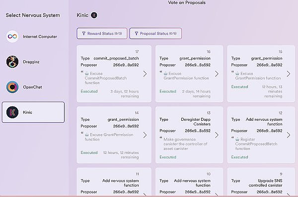 目前已有 5 个项目成功通过 SNS 成为 DAO,分别是去中心化聊天应用 OpenChat、去中心化短视频平台 Hot or Not、去中心化搜索引擎 Kinic、IC 网络首个模因币 ICGhost 和 Web3 游戏 Dragginz。有 3 个平台正在提案中,分别是去中心化社区管理平台 Catalyze、去中心化游戏平台 Boom DAO 和 AI 算力交易平台 EMC。