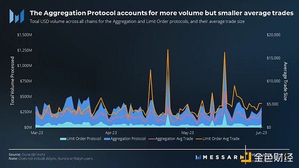 从概念上讲,聚合协议在交易量中的主导地位是合乎逻辑的。限价订单协议是在价格变动触发 swap 的基础上操作的,而聚合协议的 swap 是即时发生的,从而达成了更高的交易量。