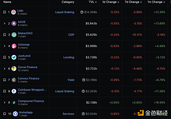 DeFi总市值及前十代币 数据来源:coingecko