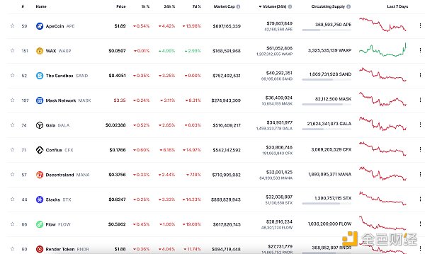 24小时NFT交易量、交易量前十项目 数据来源:Coinmarketcap