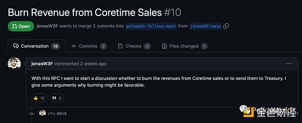 W3F 的 jonas 发起了关于销毁 Coretime 收入的讨论 https://github.com/polkadot-fellows/RFCs/pull/10