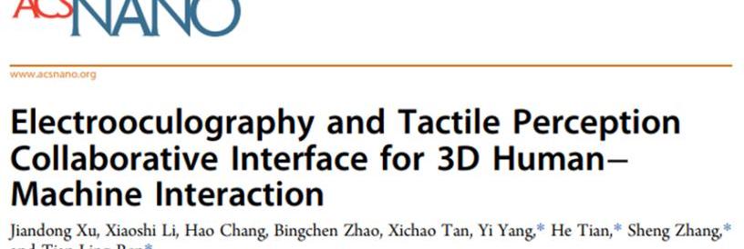 4月6日,相关论文以《三维人机交互的眼电与触觉协同界面》为题发表在ACSNano上。