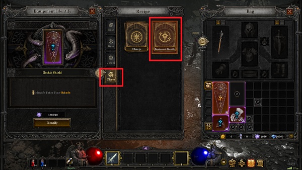 因此游戏整体流程大致是前期迅速清主线,然后在 Mystery of Depths 中升级刷材料、宝石等。稍微成型后则开始在 Void Realms 和 Mystery of Chaos 中刷材料与混沌装备兼打金。