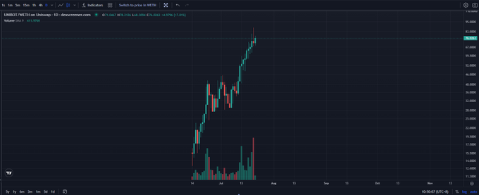 Unibot 于 2023 年 5 月 17 日在以太坊主网上线,创世时创建了 100 万个 UNIBOT 代币。发行期间增加了 100% 的流动性,代币销毁率设定为每天 0.1%。