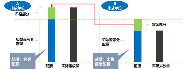 碳排放权交易是实现碳达峰、碳中和的重要政策工具。碳排放权,即国家分配给重点排放单位的规定时期内的碳排放额度,重点排放单位需在规定时限内清缴上年度的碳排放配额。如图2所示,通过碳排放权交易系统,碳排放配额有结余的企业将其配额通过交易转让给其他企业,配额不足的企业则需购买配额以履行清缴义务。