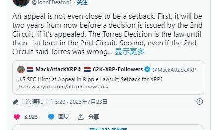 迪顿在推文中强调,上诉将为SEC带来更大的挑战。