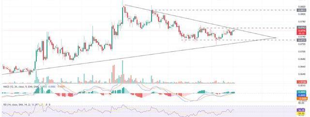目前,DOGE价格交易价格为0.0759美元,收盘价高于颈线或阻力位将为未来几天奠定看涨格局。