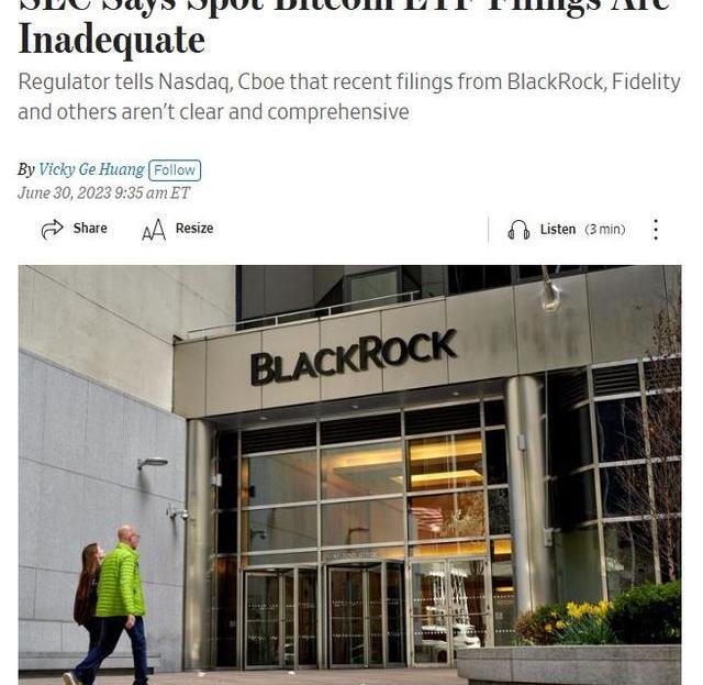 据知情人士周五(6月30日)透露,美国证券交易委员会(SEC)表示,最近一波由资产管理公司提出的推出现货比特币交易所交易基金(ETF)的申请理由不充分。