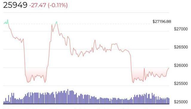 截至发稿时,比特币交易价格为25,949美元,每周下跌约5%。
