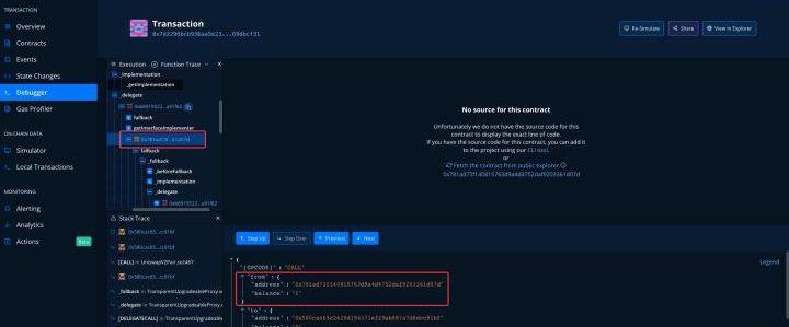 从Debugger中我们可以发现攻击合约的地址0x781ad73f140815763d9a4d4752daf9203361d07d。