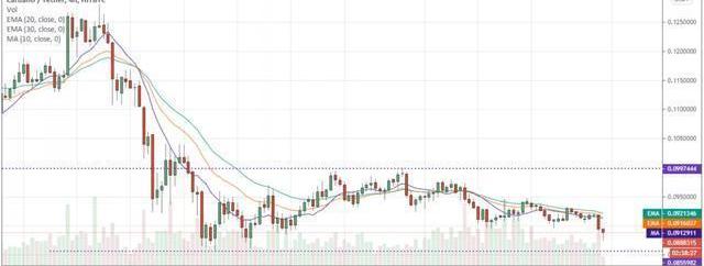 卡尔达诺的救济反弹从9月6日的低点0.0855982美元在9月13日遇到了坚固的阻力位0.0997444美元。移动平均线正在向下倾斜,这表明空头处于主导地位。