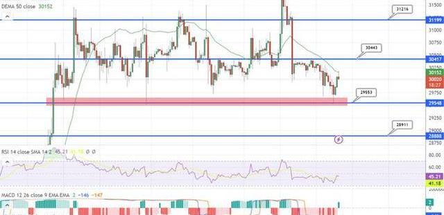 如果比特币保持在30,200美元至29,550美元的范围内,大幅价格变动可能会受到限制。