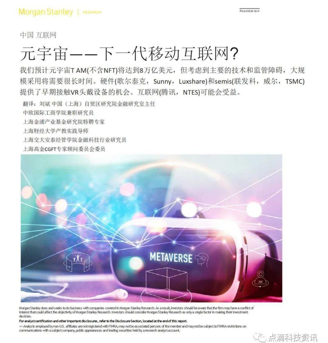 原标题:《摩根斯坦利:中国互联网—元宇宙代表下一代移动互联网?》