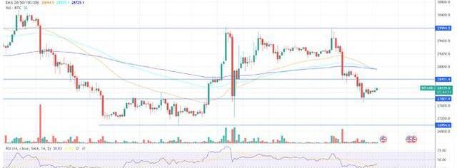 截至发稿时,比特币徘徊在28,000美元左右,昨天晚上已经测试了27,800美元的关键支撑。长期趋势继续明显有利于比特币多头,价格高于25,000美元就说明了这一点。然而,在短期内,关键是捍卫27,800美元的水平,以避免进一步回调至25,000美元,正如分析师XO所指出的那样。