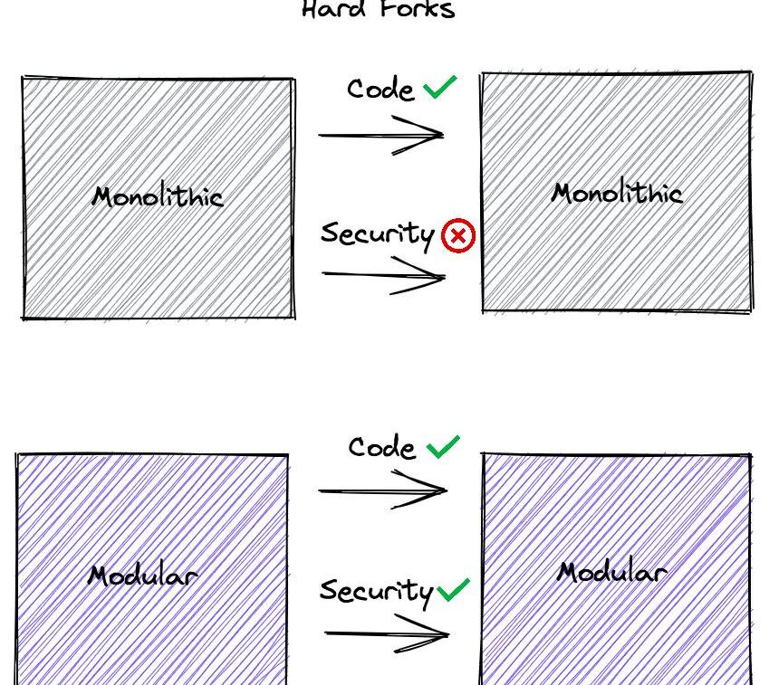 ????????????????单片链上的硬分叉与不分叉共识层的模块化链上