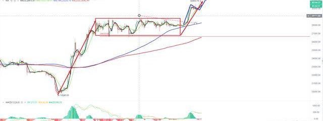 昨天早上分析到,Eth走势相对大饼Btc较为强烈,觉得eth要破2k,还有就是大饼最多再破个新高,之前一直强调btc前方压力位区域3.15w附近,此时情况非常明了,大饼btc如约而至的再次破了新高,且4h走势图中,以及出现脱离中枢区间的背驰段,目前就是第三笔的上升,看这个3笔的背驰,就需要看30min的走势图,30min图上,目前给出现盘整背驰,可能这里会直接下来,建议空方可以渐渐进场,切勿恐慌,同时做好止损操作。从各个大级别来看,都已经来到了背驰段,行情这两天也飞的差不多了,会是一个比较好的盈亏比区域。